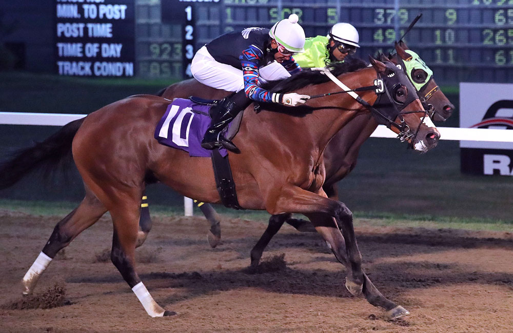 Leading 2025 ASD money earner Judo (outside) and jockey Prayven Badrie win the R.J. Speers for leading trainer Steve Keplin, Jr. (Jason Halstead / Assiniboia Photo)